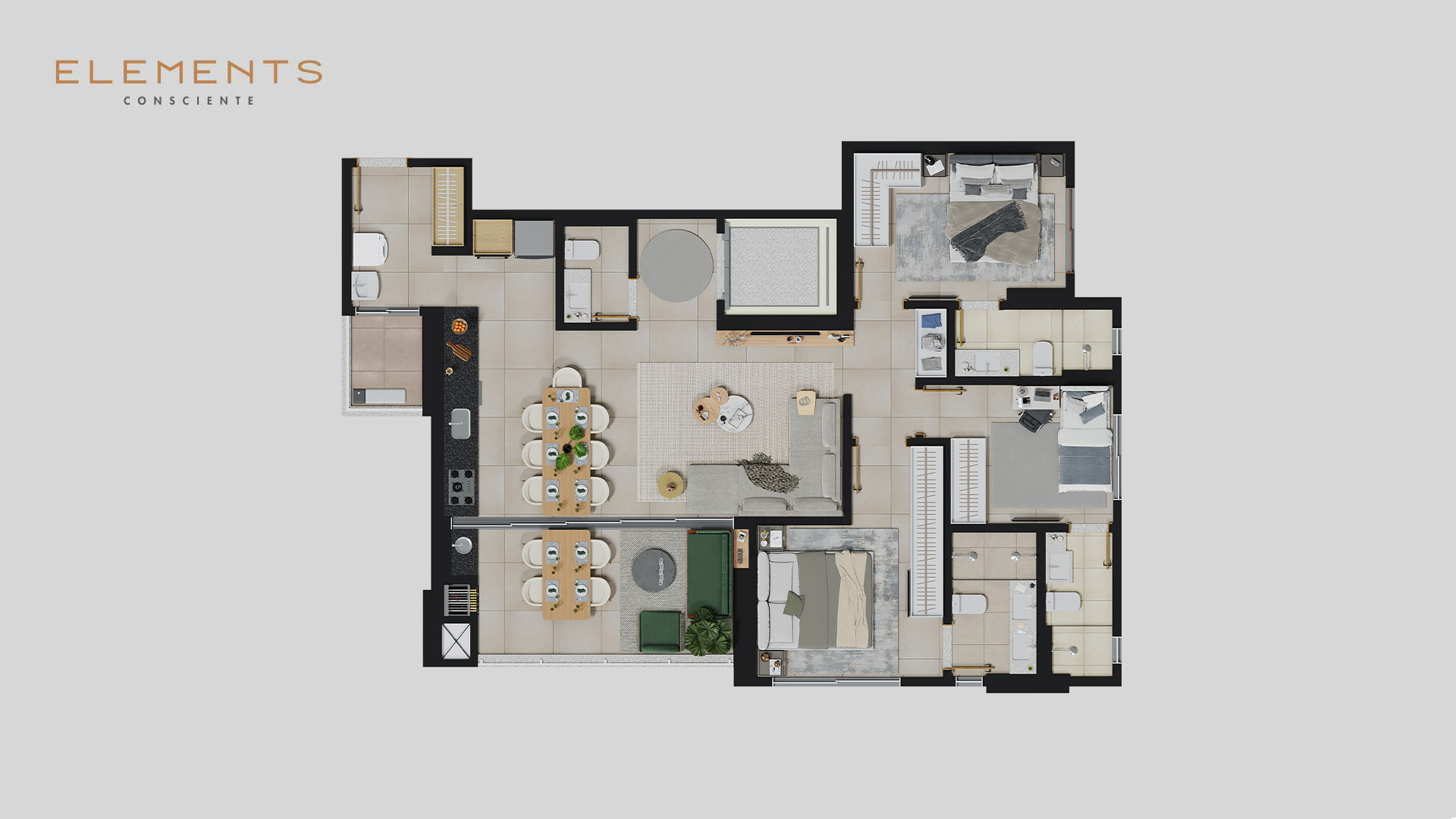 Nascido com o propósito de ser uma dedicatória escrita em concreto ao bem viver, o Elements é composto de uma arquitetura inteligente, sofisticada e abrangente em sua totalidade.