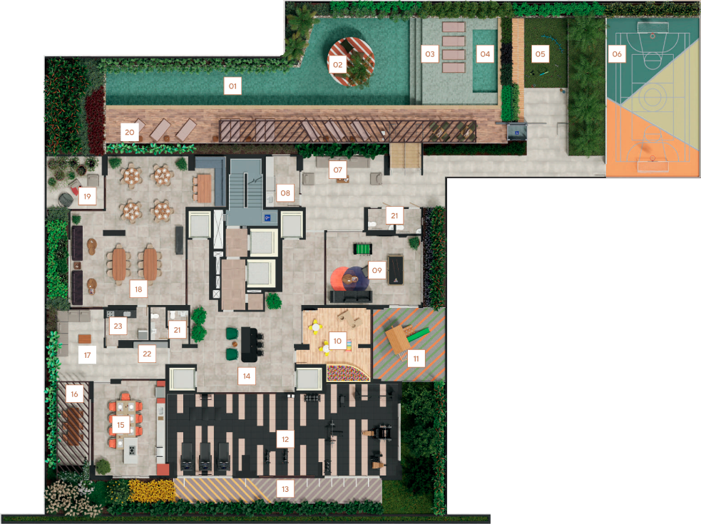 O Elements conta com áreas comuns e de lazer completas e modernas.